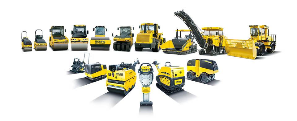 振动冲击夯,单向振动平板夯,双向振动平板夯,手扶式单钢轮振动压路机,手扶式双钢轮振动压路机,多用途压实机,组合式压路机,自行式双钢轮压路机,自行式单钢轮压路机,拖式振动压路机,胶轮压路机,卫生填埋垃圾压实机,路拌机和沥青路面现场冷再生机。